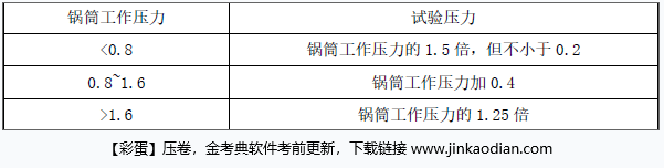 C锅筒工作压力的1.3倍,但不小于0.2MPa