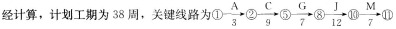 工作,且增加赶工费用少。该三项工作时间的增加,只有J工作对原工期影响1周,其他工作无影响。若将M赶工1周,则增加费用为0.8万元/周,而提前1周可获得收益5.6万元/周。