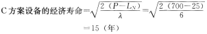 4.若C方案每年设备的劣化值均为6万元,不考虑大修费,该设备系统的静态经济寿命为多少年?