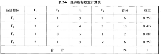 (1)采用0—4评分法计算各技术经济指标的权重。