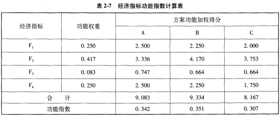 方案A成本指数=8000/(8000+8200+7400)=0.339,价值指数=0.342/0.339=1.009