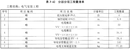 2.编列工程量清单。依据《建设工程工程量清单计价规范》,按给定的统一项目编码,编列部分项目的分部分项工程量清单,将清单项目编码、计量单位填入表3-42“分部分项工程量清单”中。