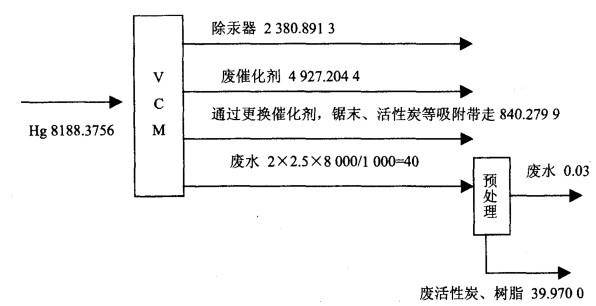 1.给出VCM生产过程中总汞的平衡图。