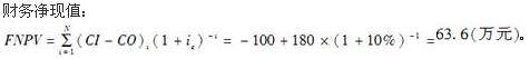 某项目第一年投资100万元,第二年净现金流量为180万元,基准收益率为10%,则财务净现值为( )万元。