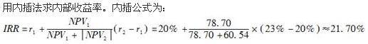 某建设项目,当i=20%时,净现值为78.70万元,当i=23%时,净现值为-60.54万元,则该项目的内部收益率为( )。