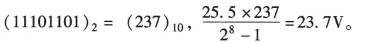 有一个8位D/A转换器,设它的满度输出电压为25.5V,当输入数字量为11101101时,输出电压为( )V。