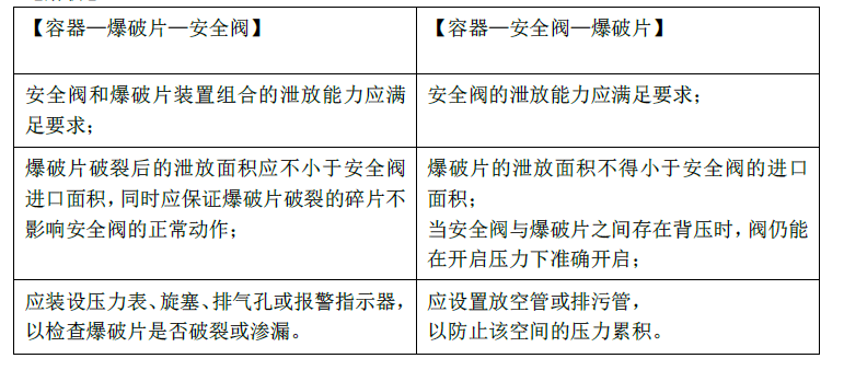 C当安全阀进口和容器之间串联安装爆破片装置时,安全阀和爆破片装置组合的泄放能力应满足要求