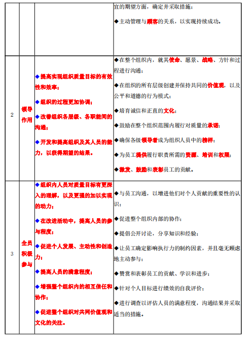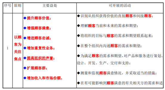 表 8-1 质量管理原则(GB/T 19000-2016)