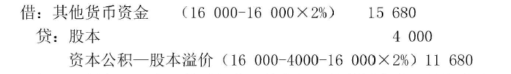 该笔业务记入"资本公积”科目的金额=16 000-4 000-16 000X2%=11 680(万元)。