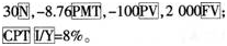 如果第1年年初你投资100万元,以后每年年末追加投资8.76万元,希望在第30年年末得到2000万元。那么,投资的收益率至少为( )。