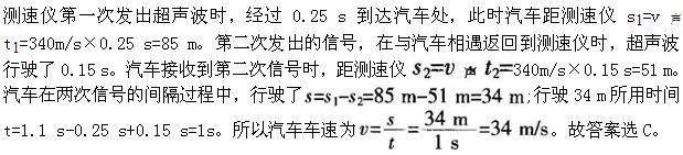 汽车接收到第一次信号时,距测速仪170m