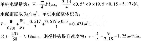 (6)如水灰比为0.5,泵量为60L/min,水泥密度为3t/m3,搅拌头提升速度不宜大于 ( )m/min。