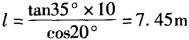 有一个岩石边坡,要求垂直开挖,采用预应力锚索加固,如图7-1所示。已知岩体的的一个最不利结构面为顺坡方向,与水平方向夹角55°。锚索与水平方向夹角20°,要求锚索自由段伸入该潜在滑动面的长度不小于1m。试问在10m高处的该锚索的自由段总长度至少应达到下列何项数值?( )