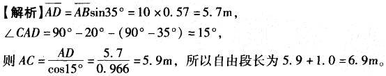 有一岩体边坡,要求垂直开挖,如图7-6所示。已知岩体有一个最不利的结构面为顺坡方向,与水平方向夹角为55°,岩体有可能沿此向下滑动。现拟采用预应力锚索进行加固,锚索与水平方向的下倾夹角为20°。问在距坡底10m高处的锚索的自由段设计长度应考虑不小于下列哪个选项?( )