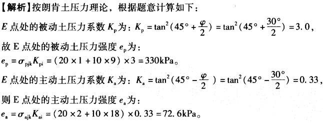 A被动土压力强度ep=330kPa;主动土压力强度ea=73kPa