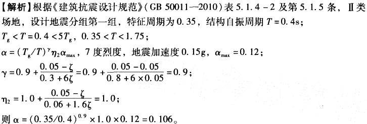 已知场地地震烈度7度,设计基本地震加速度为0.15g,设计地震分组为第一组。对建造于II类场地上,结构自振周期为0.40s,阻尼比为0.05的建筑结构进行截面抗震验算时,相应的水平地震影响系数最接近下列哪个选项的数值?( )