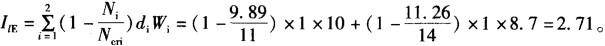 根据《建筑抗震设计规范》(GB 50011 —2010)第4. 4. 3条和第4. 3. 5条, 已知打桩后桩间土的标准贯入锤击数计算公式为:N1=NP+100ρ(1-e-0.3NP),则可得: 深度4m处,N1=5+100×0.063×(1-2.718-0.3×5)=9.89; 深度5m处,N1=9+100×0.063×(1-2.718-0.3×9)=14.88; 深度7m处,N1=6+100×0.063×(1-2.718-0.3×6)=11.26; 打桩后5m处实际系数大于临界系数,则液化点只有4m及7m两个,液化指数为: