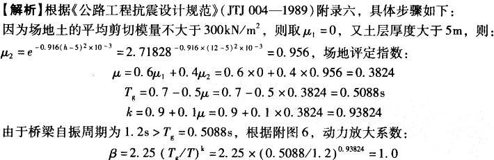 某桥梁工程所处场地为均质黏性土,土层厚度为12m,剪切模量为300kN/m2,黏性土下伏泥岩层,桥梁自振周期为1.2s,则其动力放大系数为( )。
