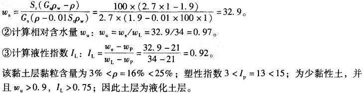 根据《水利水电工程地质勘察规范》(GB 50487 — 2008)附录P第P.0.4条,分析步骤如下: ①计算少黏性土的饱和含水量ws: