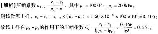 已知某地区淤泥土标准固结试验e-logp曲线上直线段起点在50 ~100kPa之间。该地区某淤泥土样测得100 ~200kPa压力段压缩系数 a1-2为1. 66MPa-1,试问其压缩指数Cc值最接近于下列何项数数值? ( )