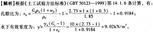 已知粉质黏土的土粒比重为2. 73,含水量为30%。土的容重为1.85g/cm3,浸水饱和后该土的水下有效重度最接近( )kN/m3。