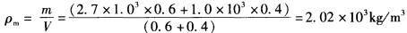 泥石流的流体密度(固液混合体的密度)为: