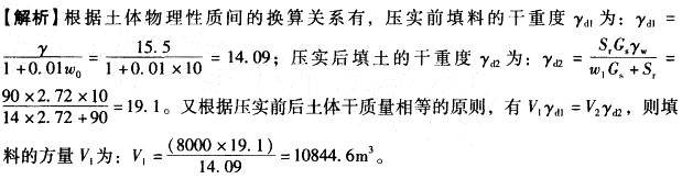 某建筑物地基需要压实填土8000m3,控制压实后的含水量w1= 14%,饱和度Sr= 90%,填料重度γ= 15.5kN/m3,天然含水量w0= 10% ,相对密度为Gs =2. 72,此时需要填料的方量最接近于( )m3。