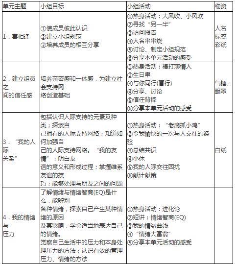 以建立和促进该商业大厦内企业员工的社会支持网络为目的的小组工作计划书的设计步骤如下: (1)问题的陈述、分析与服务理念 该商业大厦中的各企业员工由于工作环境、工作竞争压力以及人际关系等因素的变化,常常使得他们有很多困扰,可能会出现以下问题: ①企业内部工作中的人际关系问题 服务对象很在意是否被接纳,对于同事或朋友的言语接纳很敏感,也容易产生嫉妒或争夺别人关心的现象,有时还会受到群体的压力。 ②工作压力带来的情绪问题 企业对业绩的要求或相互竞争导致的外在压力,以及自身对业绩增长、个人发展、企业发展走向的各种担忧产生的内在压力,都会引起身心的不良反应。社会工作者应该灵活选择各种服务方式以达到减少或消除任何导致职业心理健康问题的因素,并且设法创造一个健康、积极的工作环境。 ③外来务工人员的城市融人和生活困难问题 在所有的从业人员中,外地来城市务工的人数所占比例较高,他们大多数就在附近租房居住,居住环境较差,但是生活成本高,无疑加重了他们的生活和工作压力。 结合运用社会支持网络的相关理论分析,良好的社会支持有利于身心健康,而劣性社会关系的存在则损害身心健康,社会支持网络可以缓冲压力所带来的负面影响,对应激状态下的个体提供保护;社会支持网络可提供个人压力因应方法,或直接参与压力因应过程。 因此,社会工作者希望通过企业社会工作,在服务对象的工作环境中搭建一个社会支持网络,使服务对象通过这个积极的、支持性的平台结交更多的朋友共同面对及解决工作和生活中出现的问题。 (2)方案设计 ①小组总目标 建立商业楼宇中的企业员工社会支持网络。 ②具体目标 a.搭建企业员工交流平台,提供个人展示的机会,使他们认识更多的朋友,促进人际关系的发展,初步建立社会支持网络; b.协助企业员工缓解工作压力,疏导情绪,关注自身的心理健康状况,平衡工作与生活; c.在活动中体验团队精神,促进外来务工人员与本地人员的相互融合,建立互助、信任、合作的伙伴关系; d.整合社区资源,整治居住环境,同时打击不合规定的出租房屋及房租价格,提高生活质量。 (3)小组性质 社交与成长型小组。 (4)组员 20~35岁之间的商业大厦内的企业员工,他们工作繁忙且压力大,缺乏组织联系,相互间交往互动很少,人际关系疏离冷漠。 (5)小组特征 每周三中午12:30~13:30活动一次,共持续6周。 (6)初步的小组活动程序 ①在大厦里开展项目前期宣传活动,为招募组员做好基础工作; ②建立网络联系交友平台,使企业员工在参与活动之余也能认识新朋友并经常保持联系; ③利用宣传活动进行企业员工情况调研,根据需求修改小组计划书,设计出适合的小组活动内容; ④多种方式招募小组活动组员; ⑤正式开展小组工作; ⑥服务评估,具体包括: a.过程评估:在小组活动过程中,通过小组组员的分享和反馈,了解组员的变化;通过观察者的观察,发现组员的参与度及其变化程度。 b.结果评估:服务对象填写满意度调查表,小组组员变化自我评估;社会工作者的小组工作报告;督导意见以及社会工作者的自我反思。 (7)详细的小组活动流程设计(见表15—3) 表15—3![]()