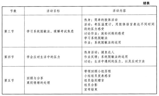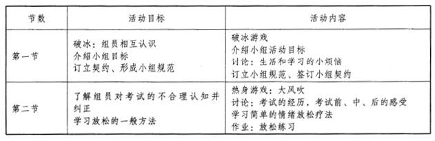 (4)小组组员:有考试焦虑症状并且希望改善的同学,高三学生,每个小组人数为8人。