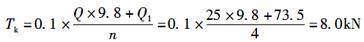 中级工作制吊车,只考虑由《建筑结构荷载规范》(GB 50009—2012)规定的惯性力。根据第6.1.2条第2款表6.1.2可知,软钩吊车额定起重量为16~50t时,吊车横向水平荷载标准值应取横行小车重量与额定起重量之和的10%,并乘以重力加速度。则可得吊车横向水平荷载标准值为:由此可知,A项数值最为接近。