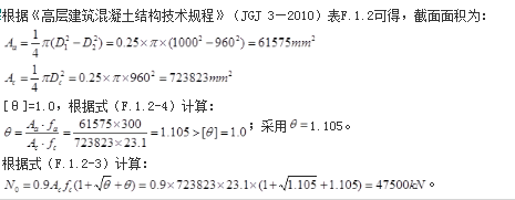所示。该穿层柱抗震等级为一级,实际高度L=10m,考虑柱端约束条件的计算长度系数μ=1.3,采用钢管混凝土柱,钢管钢材采用Q345(fa=300N/mm2),外径D=1000mm,壁厚20mm;核心混凝土强度等级C50(fc=23.1N/mm2)