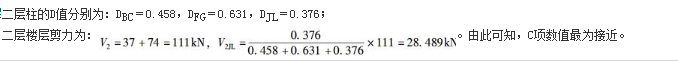 已知二层柱JL的DJL值(相对值)为0.376,柱FG的DFG=0.631,柱L承受的剪力V2JL最接近于( )kN。