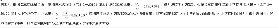 假定,剪力墙布置的其他要求满足规范规定。试问,如果仅从结构规则性及合理性方面考虑,四种方案中哪种方案最优?( )A方案A