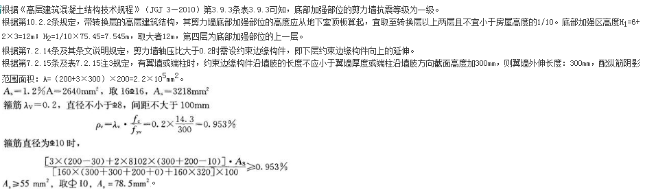 第四层某剪力墙边缘构件如图6-32所示,阴影部分为纵向钢筋配筋范围,纵筋混凝土保护层厚度为20mm。已知剪力墙轴压比>0.3。试问,该边缘构件阴影部分的纵筋及箍筋为下列何项选项时,才能满足规范、规程的最低抗震构造要求?( )