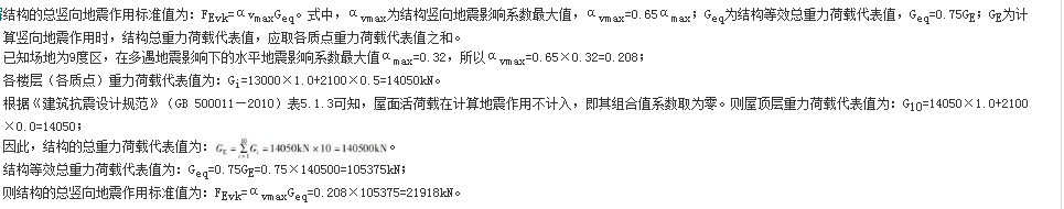 该楼的结构布置、侧向刚度及质量等均对称、规则、均匀、属规则结构,则该楼总竖向地震作用标准值为( )kN。