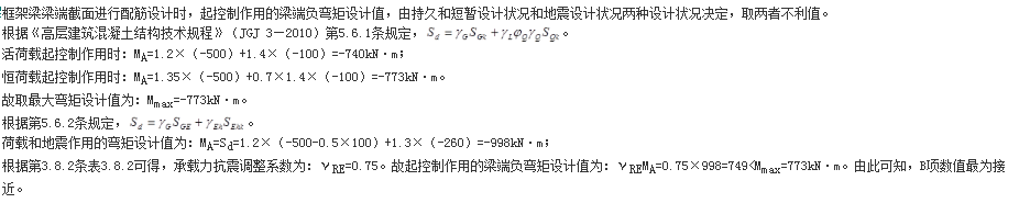 试问,进行截面A梁顶配筋设计时,起控制作用的梁端负弯矩设计值(kN·m),与下列何项数值最为接近?( )