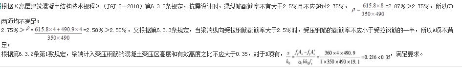 B关于梁端A—A剖面处纵向钢筋的配置,如果仅从框架抗震构造措施方面考虑,下列何项配筋相对合理?( )