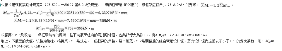 某框架结构,抗震等级为一级,底层角柱如图6-30所示。考虑地震作用组合时按弹性分析未经调整的构件端部组合弯矩设计值为:柱:McA上=300kN·m,McA下=280kN·m(同为顺时针方向),柱底MB=320kN·m;梁:Mb=460kN·m。已知梁h0=560mm,a"s=40mm,梁端顶面实配钢筋(HRB400级)面积As=2281mm2(计入梁受压筋和相关楼板钢筋影响)。试问该柱进行截面配筋设计时所采用的组合弯矩设计值(kN·m),与下列何项数值最为接近?( )