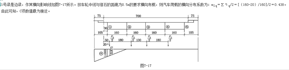 用杠杆原理法计算1号梁的汽车荷载横向分布系数m1q最接近于( )。A0.238