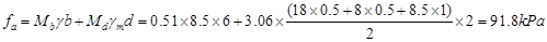 根据《建筑地基基础设计规范》(GB 50007—2011)第5.2.5条式(5.2.5)计算,在②层为粉砂层时,承载力系数Mb=0.51,Md=3.06,地基承载力特征值为:根据《建筑抗震设计规范》(GB 50011—2010)第4.2.3条式(4.2.3)及表4.2.3计算,修正系数