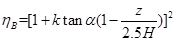 根据《建筑结构荷载规范》(GB 50009—2012)第8.2.2条规定,对于山坡顶部的修正系数为:其中,k为系数,对山坡取1.4;α为迎风面一侧的坡度,