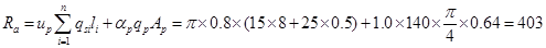 根据《建筑地基处理技术规范》(JGJ 79—2012)第7.1.5条第3款式(7.1.5-3)计算,复合地基承载力特征值应通过复合地基静荷载试验或采用增强体静荷载试验结果和其周边土的承载力特征值结合经验约定,初步设计时,增强体单桩竖向承载力特征值为:由此可知,C项数值最为接近。