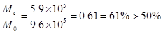 框架部分承受的地震倾覆力矩:框架部分承受的地震倾覆力矩与结构总地震倾覆力矩比值为: