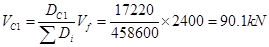 其中某边柱C1的侧向刚度DC1=17220kN/m,其反弯点高度hy=3.75m,沿柱高范围没有水平力作用。试问,在水平地震作用下,按侧向刚度计算的C1柱底弯矩标准值(kN·m),与下列何项数值最为接近?( )
