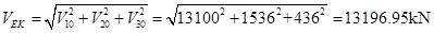 根据《建筑抗震设计规范》(GB 50011—2010)第5.2.2条第2款规定,三个振型组合产生的基底剪力标准值VEx为:由此可知,A项数值最为接近。