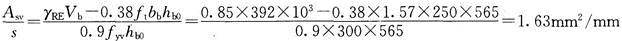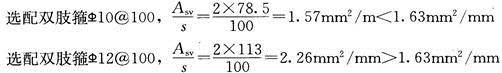 根据式(7.2.23-3)计算,满足规范、规程最低要求的抗剪钢筋面积为: