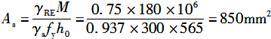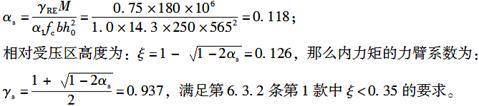 根据《高程建筑混凝土结构技术规程》(JGJ 3—2010)相关条例,具体计算如下: ①由于M=180×106N·mm,则截面抵抗矩系数为:②由于