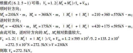 根据《高层建筑混凝土结构技术规程》(JGJ 3—2010)相关条例,计算如下: ①计算重力荷载引起的剪力值 重力荷载引起的梁内最大剪力为:VGb=135.2kN; 重力荷载和地震作用组合作用下跨中的最大剪力为:V=230×103N。 ②剪力设计值的确定由此可知,C项数值最为接近。