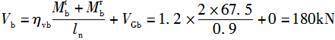 有一连梁的截面尺寸为b×h=160mm×900mm,净跨ln=900mm,抗震等级为二级,纵筋HRB335级,fy=300N/mm2,箍筋HPB300级,fyv=270N/mm2,混凝土强度为C30,fc=14.3N/mm2,ft=1.43N/mm2。由楼层荷载传到连梁上的剪力VGb很小,略去不计。由地震作用产生的连梁剪力设计值Vb=150kN。