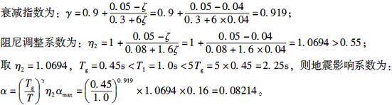某高度45m钢结构,建于抗震设防烈度8度区,地震加速度0.2g,设计分组为第一组,场地类别为Ⅲ类,结构基本周期为1.0s。则与结构基本周期相应的地震影响系数,最接近于( )。